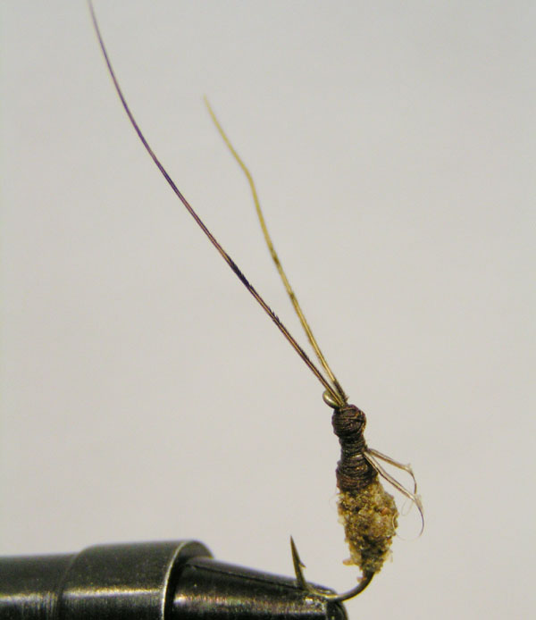 Gerade bei Nymphen hat sich das “Schaffen” unregelmäßiger Aufbauenten eben dieser Fliegen, sehr bewährt, da hier neben dem allgemeinen Erscheinungsbild auch und vor allem die Bewegung der Nymphe am Grund, oder eben im Schlupf nachgeahmt wird. Eine gezielte Unregelmäßigkeit im Aufbau gepaart mit der Bewegung des Köders am Grund sind wichtige Merkmale für erfolgreiche Fliegen zum Fischen und verleiten den Fisch sich überhaupt mit dem angebotenen Köder zu beschäftigen.