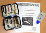 In unserem Fliegenfischer-Profi-Set finden Sie die aus unserer Erfahrung wichtigsten und fängigsten Fliegen für den laufenden Einsatz am Gewässer. Das Set ist so aufgebaut, dass Sie, so zumindest unsere Erfahrung häufig nict mehr brauchen, als eben diesen Inhalt. Eine Mix aus Nymphen und Trockenfliegen ermöglichst Ihnen das ganze Jahr die fängisten Fliegen zu nutzen. Sie erhalten jeweils 6 rote und schwarze Waldameisen, mod. Super-Buba, und Kleinstfliegen als Mücken auf 16-er und 14-er Haken (Bindegröße jeweils 18 bzw. 20-er Haken) gebunden. Dazu jeweils 3 Maifliegen (Imago) in gelb und braun. Als Nymphen erhalten Sie 6 mod. Ritz B in HG 8 und 10 unsere Spezial-Sprocks jeweils HG 10 und 16 (am Boden und im Schlupf) sowie die super fängige Super-Body ebenfalls in HG 8 und 10 zu jeweils 6 Stück. Als Spezialität haben wir Ihnen 2 Wespen beigelegt. Das Profi-Set liefern wir fertig sortiert in einer Dose mit dem benötigten Fliegenfett. Beigelegt ist eine Nutzungs- und Anwendungsanleitung, in welcher wir unsere Erfahrungen zum Einsatz der Fliegen beschrieben haben. Mit diesem Set kann es also sofort nach dem Erhalt ans Wasser gehen.(Eigenfertigung, so nicht im freien Handel, nur auf Bestellung mit Lieferzeit verfügbar)